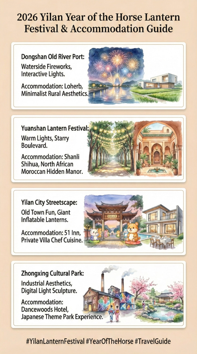In 2026, the Year of the Horse, Yilan transforms into a radiant wonderland once again. From the romantic banks of the Dongshan River to the industrial-chic charm of the Chung Hsing Cultural and Creative Park, this grand festival blends landscape art with high-tech elements to celebrate the spirit of "Galloping to Success."