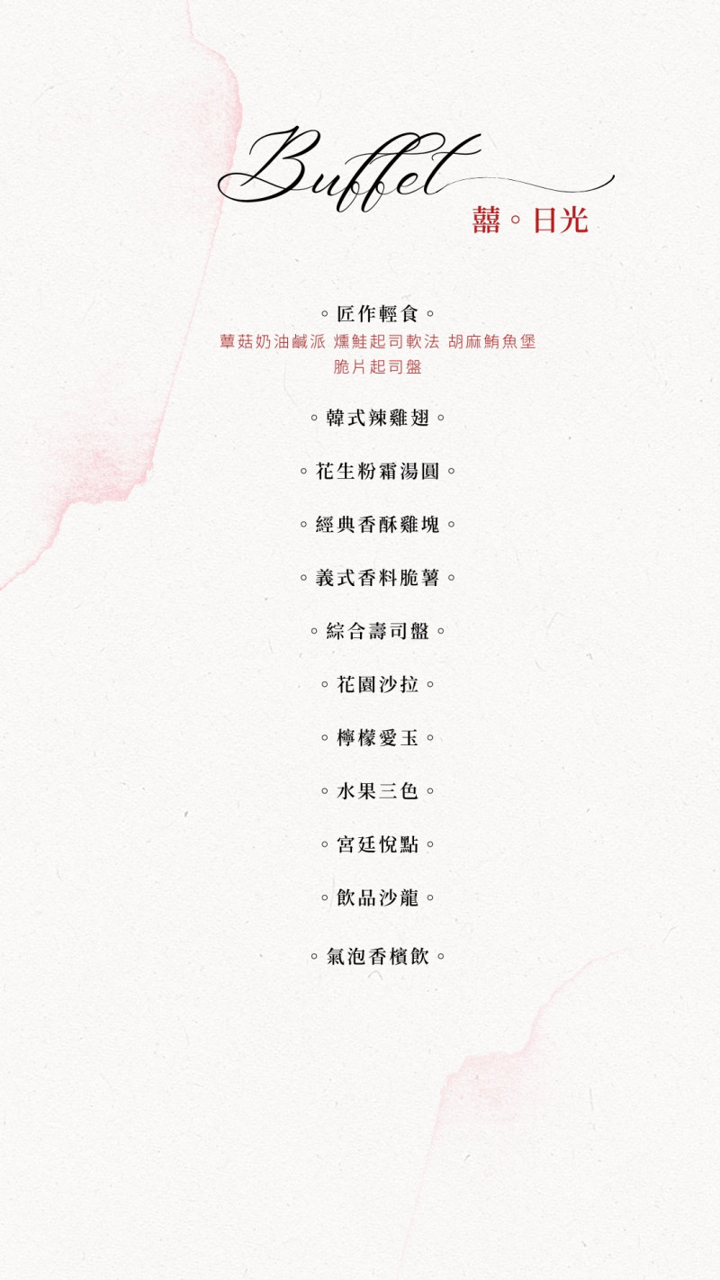 囍。日光Buffet菜單