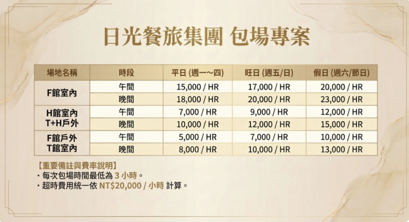 日光是舉辦聚會、觀禮、發表會、企業會議等活動的理想選擇。本篇將帶您一次了解各館空間特色與包場專案亮點,協助您找到最適合的活動場地。