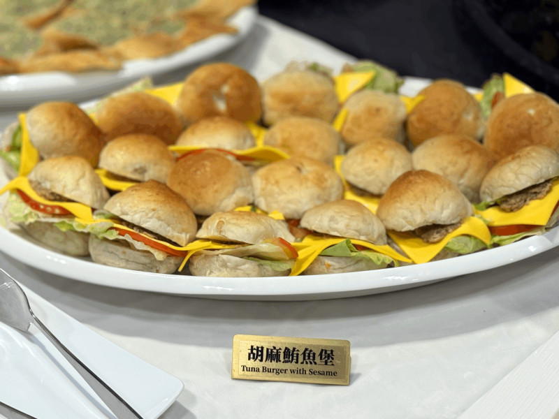 以香氣十足的胡麻醬調和鮮嫩鮪魚,質地滑順又保有鮪魚纖維的口感,搭配蓬鬆柔軟的迷你漢堡麵包,是一道輕盈卻富有記憶點的小巧心意。