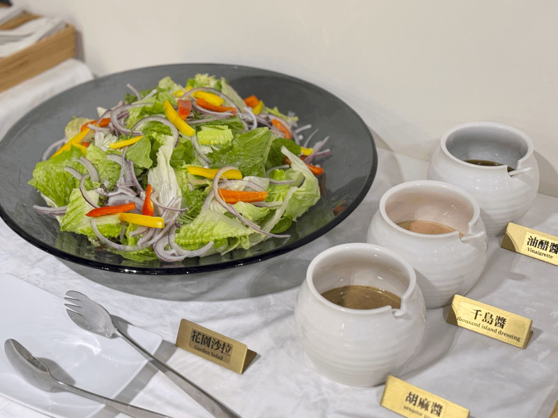 嚴選多款當季新鮮蔬菜,搭配特製日式胡麻醬、蜂蜜油醋醬與義式千島醬三款沾醬,每一口都像在花園散步,清新自然,讓人瞬間喚醒味蕾。