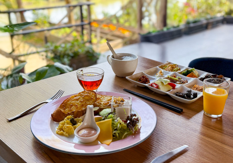 第二天清晨醒來,伴著窗外稻田的風聲與陽光,享用日光綠築提供的慢食早餐。餐點內容包含中式與西式可以自由選擇,餐點融合宜蘭在地特色與營養師的菜單設計,不僅吃的安心,視覺與味覺也獲得雙重享受。