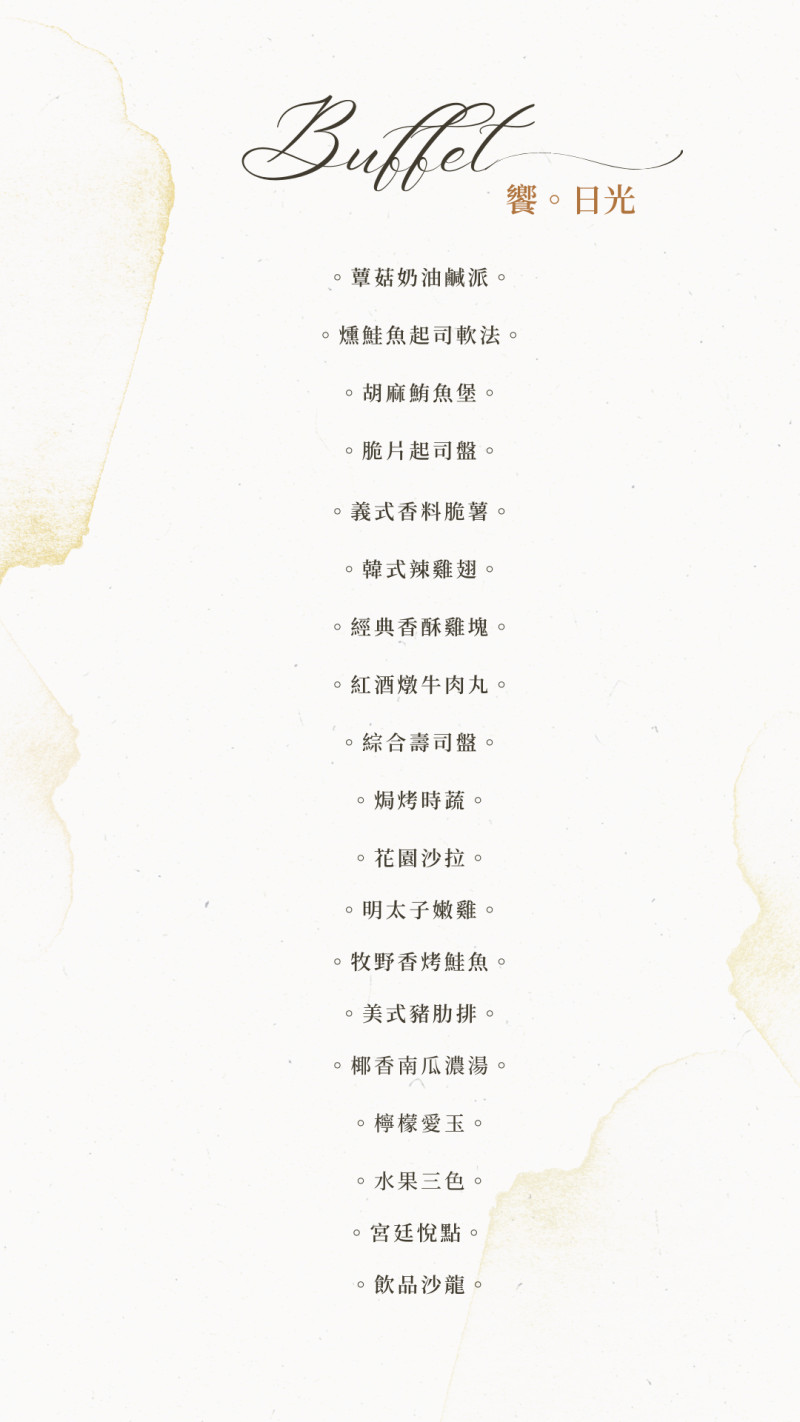 【饗。日光Buffet菜單】