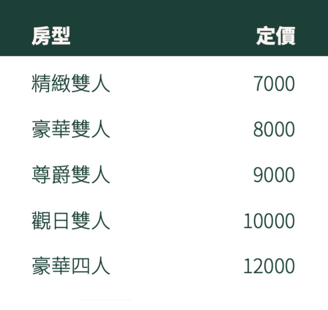 日光房間價格表